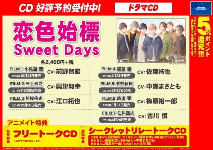 ドラマcd 恋色始標 Sweet Days Film 5 茅野秋良 Cv 中澤まさとも アニメイト